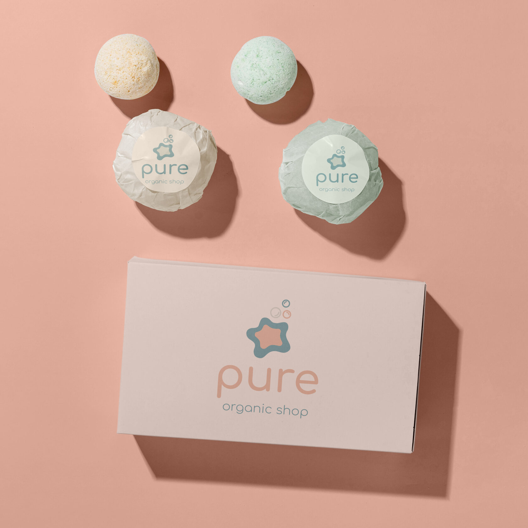 Pure - интернет-магазин ручной работы, где можно купить натуральное мыло и бомбочки для ванны. Бренд с заботой подходит к своим покупателям, поэтому важно было создать мягкий и нежный образ продукта.